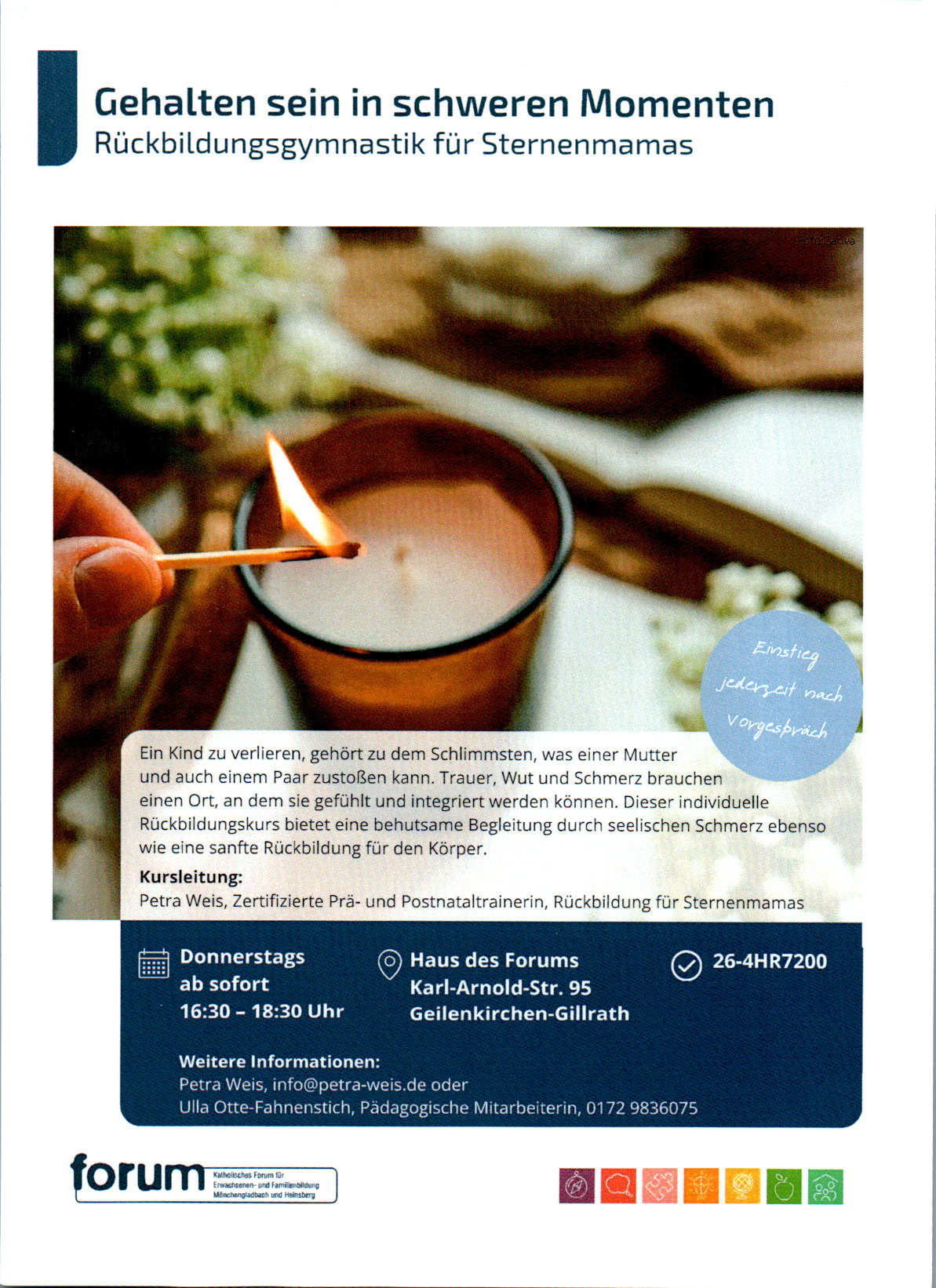 Petra Weis, Zertifizierte Prä- und Postnataltrainerin, Rückbildung spez. für Sternenmamas, info@petra-weis.de